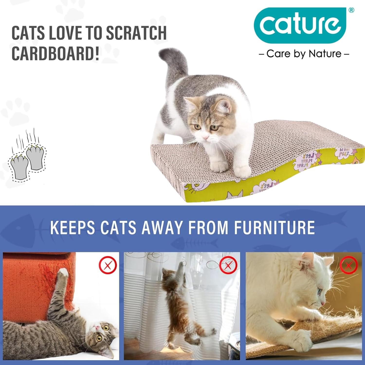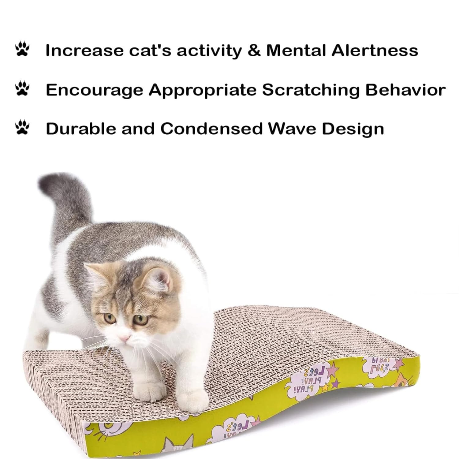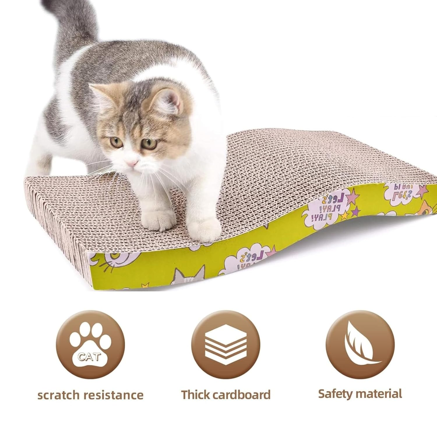 Durable & Natural Material: Made of heavy duty corrugated and 100% recycled cardboard, so the cardboard cat scratcher is strong enough to resist the sharpest claws for a fair enough long time. It is also safe and non-toxic. Even the glue used in the construction is corn-starch.Perfectly healthy for your adorable cats.