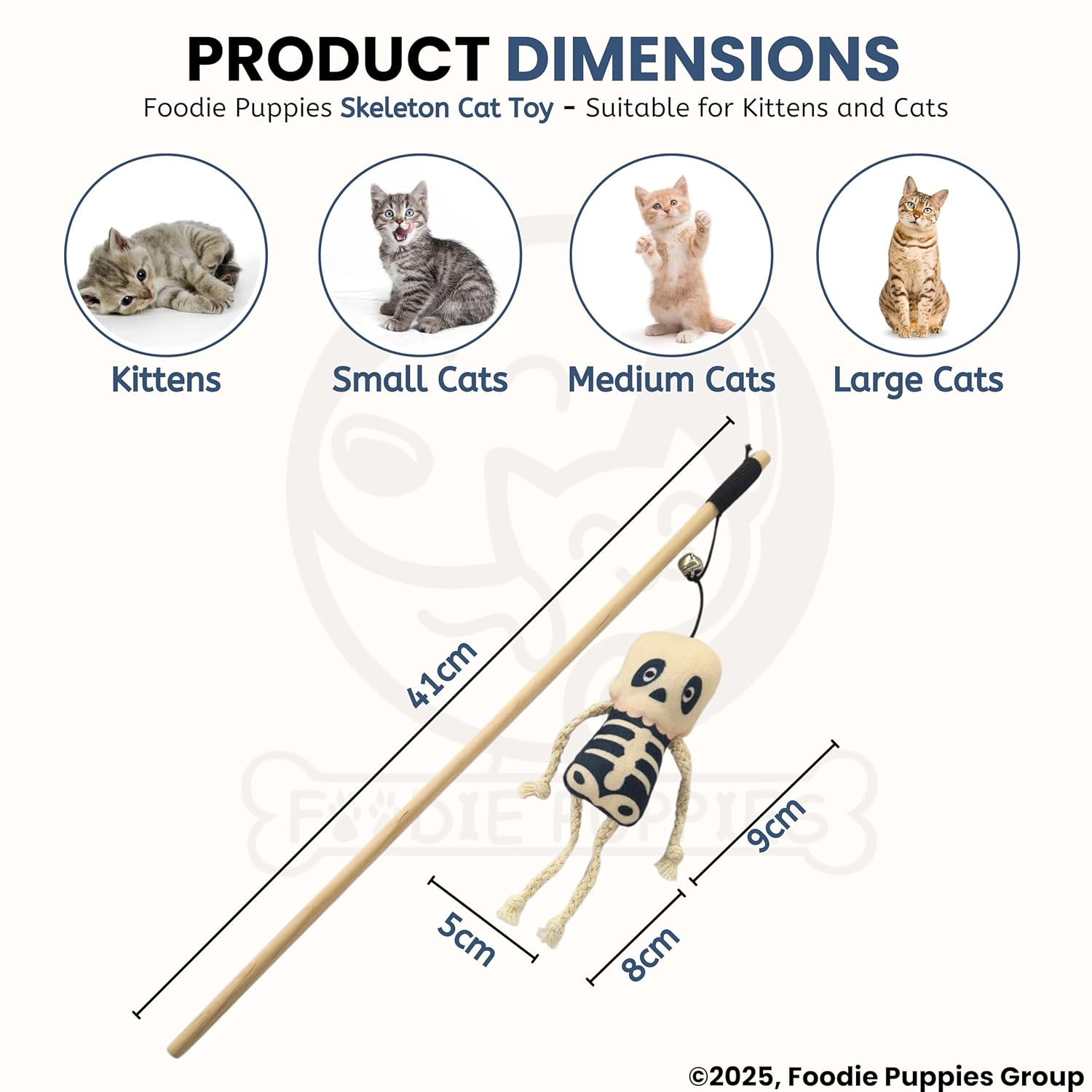 Cat Teaser Playing Wooden Stick Halloween Plush Toy (Skeleton, 41cm) for Cats and Kittens | Interactive Bell Hanging Wood Wand | Fun Teasing, Catching, Chasing and Bonding Play