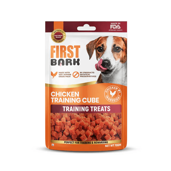 First Bark Chicken Training Cubes Dog Treat is a Customized nutrition Solution For Our Furry Friends, We have Made it a Scrumptious meal With Zero Fillers and 100 % Safe .Our Endeavour is to create a healthy treats for an enriching experience
