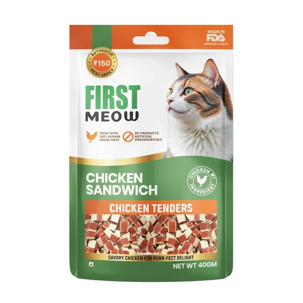 First Meow Chicken Sandwich Cat Treat is a customized nutrition solution. Prepared in the form of a scrumptious and healthy treat with zero fillers, Use as a training treat. We love giving treats to our cats as it is a way for us to bond with them. This contains essential nutrients so that the cat’s health is not compromised. The recommended amount of treats is given below:
