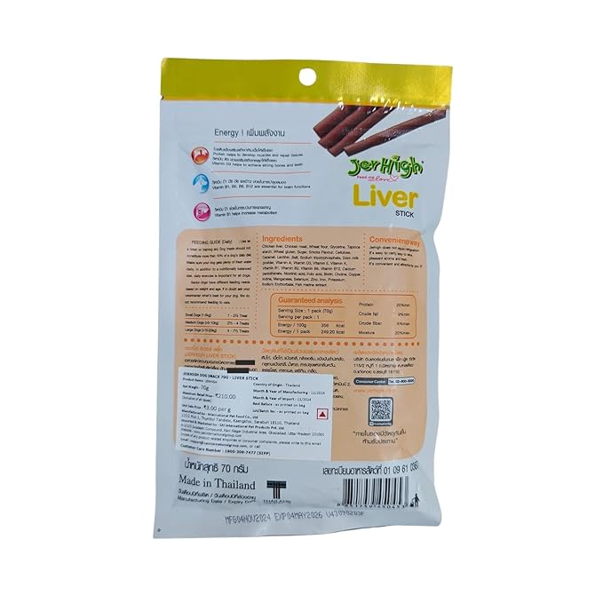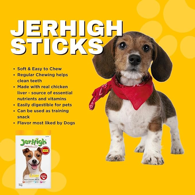 JerHigh Liver Dog Stick is a premium dog treat which can be given to dogs of all breeds and sizes. It composes of Chicken Meat and Liver Flavor which provides a lot of vitamins and minerals. JerHigh Liver Stick contains high protein and Vitamin B1 which helps in managing your dog’s weight, increase metabolism, improves muscles strength and helps in managing your dog’s weight. It contain Vitamin C1, B5, B8 and B12 which improves brain function and Vitamin D3 which provides strong bone and teeth.