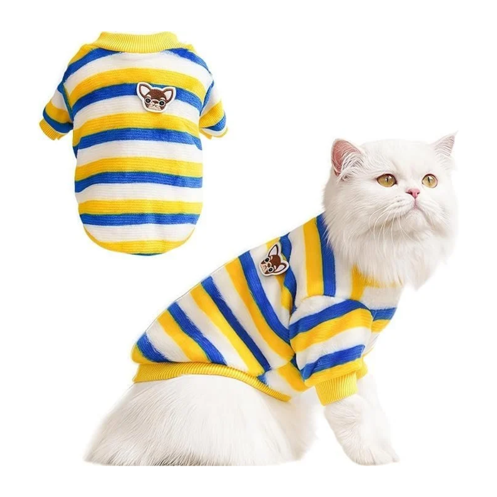 Oft Warm Fleece Small Dog & Cat Shirt, Cute Stripe Pattern Stretchable Winter Cosy Vest Tshirt For Shihtzu, Papillon, Pekingese Bichon Etc (Size: L, Chest: 45Cm, Length: 35Cm)