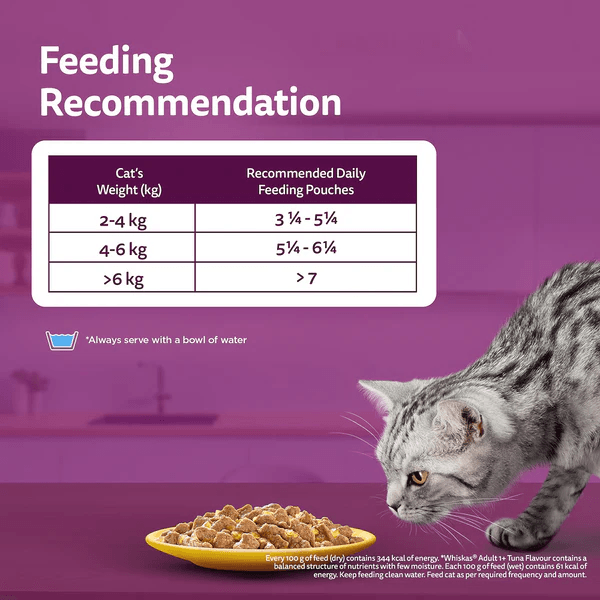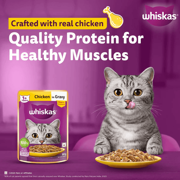 Whiskas Chicken in Gravy Wet Meal offers complete nutrition crafted for your adult cat’s overall well-being. This balanced cat food is not just a meal; it’s a flavorful experience designed to meet your cat’s daily nutritional requirements, providing essential vitamins, minerals, and the right moisture for a healthy and joyous life.