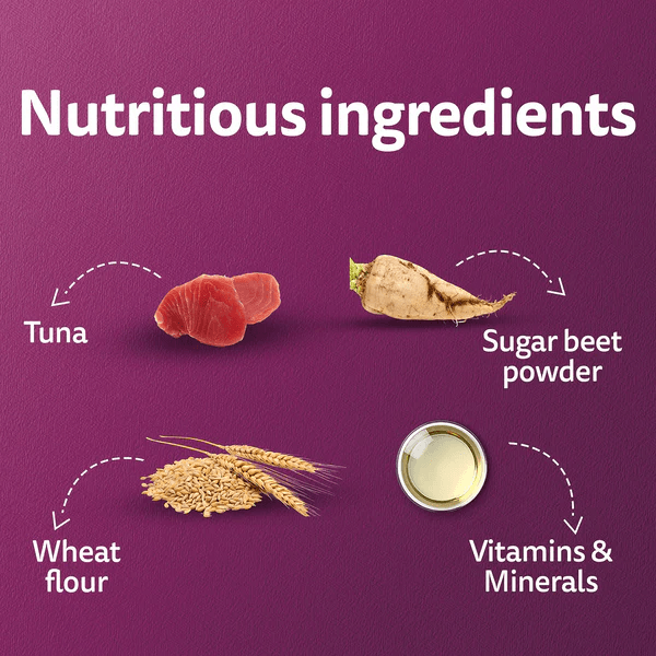 | Ingredients | Tuna, jelly, calcium, phosphorus, taurine, vitamins, minerals, antioxidants |