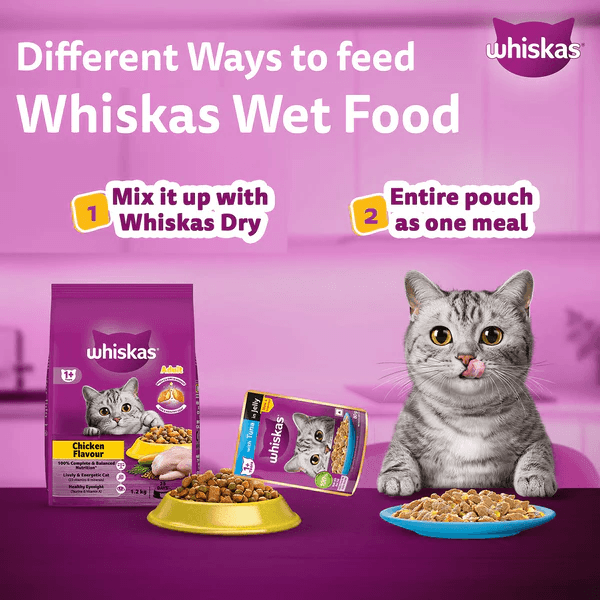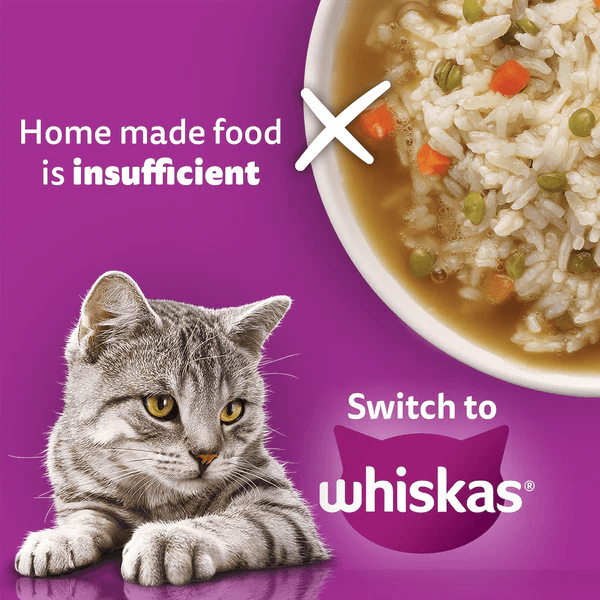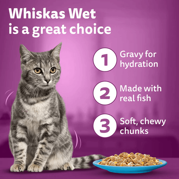 • Whiskas wet cat food has an appetizing texture, aroma and flavor that appeals to the feline palate and attracts even fussy eaters for a fun and filling mealtime.