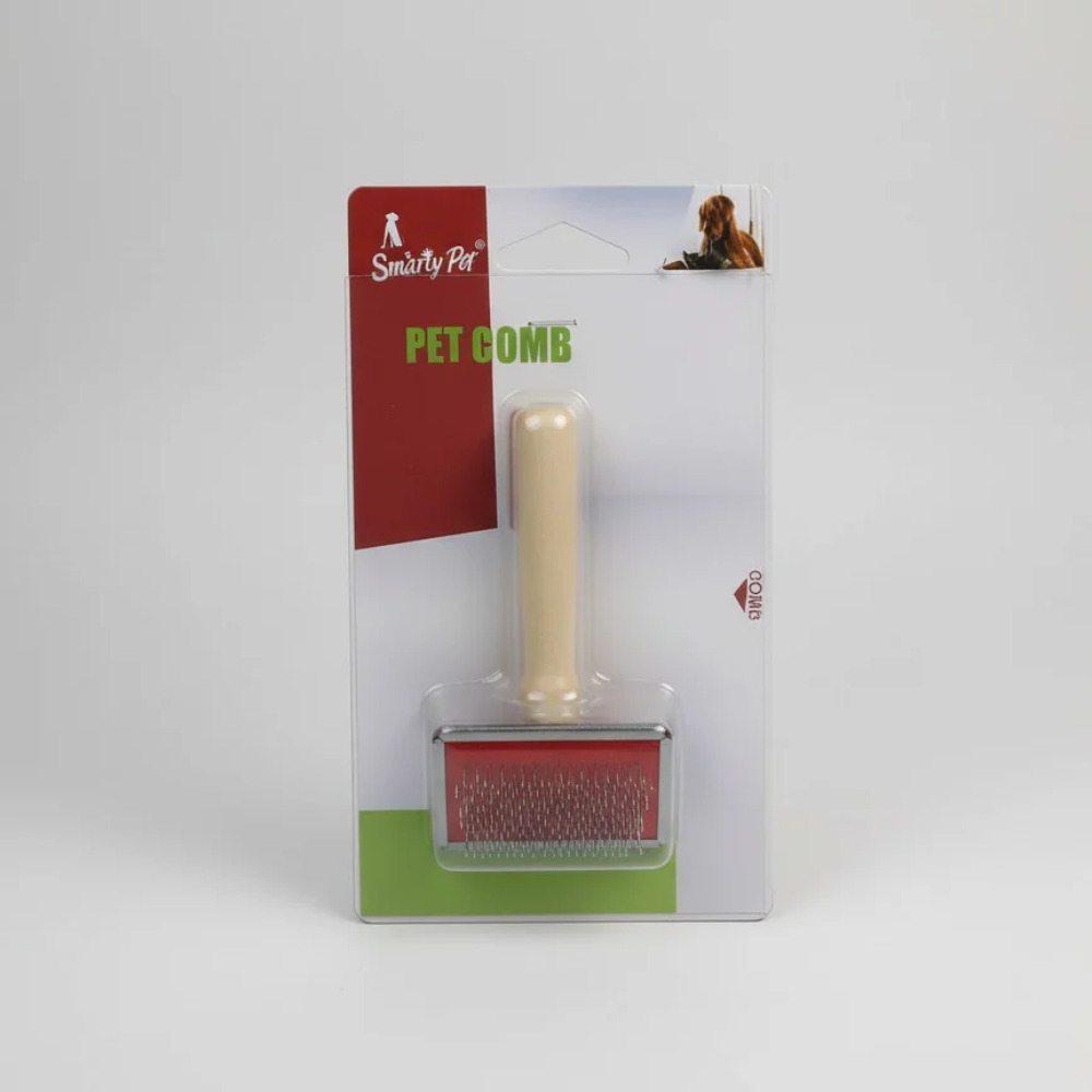 🪵 Sturdy Wooden Handle:- Classic polished wooden handle of WiggleBoo Comb provides a comfortable, firm grip—crafted for durability and grooming control even on large pets.